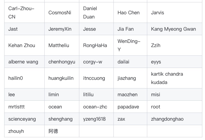感谢@zhangshenghang对本次版本发布的指导,以及以下贡献者对本次发布的代码提交、文档撰写、问题反馈做出的宝贵贡献(按用户名排序):