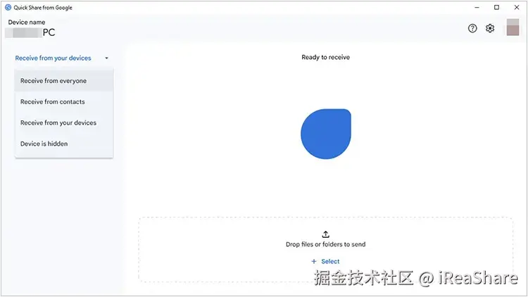 第 2 步: 从 Google 官方网站下载并安装 适用于 Windows 的 Quick Share 应用。打开该应用并使用您的 Google 帐户登录。