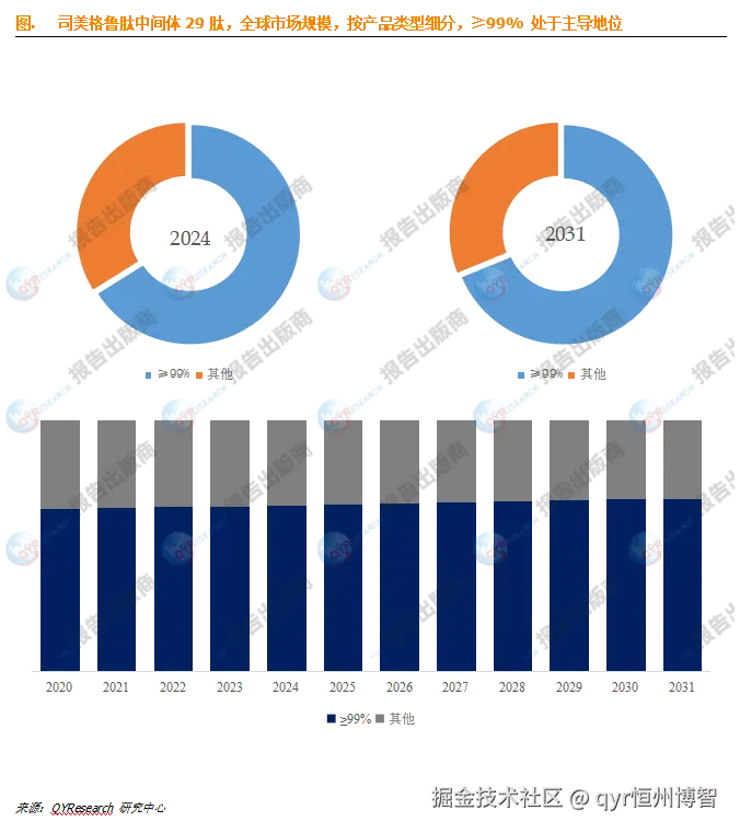 根据QYResearch最新调研报告显示,预计2031年全球司美格鲁肽中间体29肽市场规模将达到14.52亿美元,未来几年年复合增长率CAGR为50.6%。