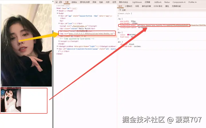 // ... 省略其他配置 module: { rules: [ // ... 省略其他配置 { test: /.(jpg|png|gif|jpe?g|svg)$/, type: 'asset/inline', }, ], },- 我们用