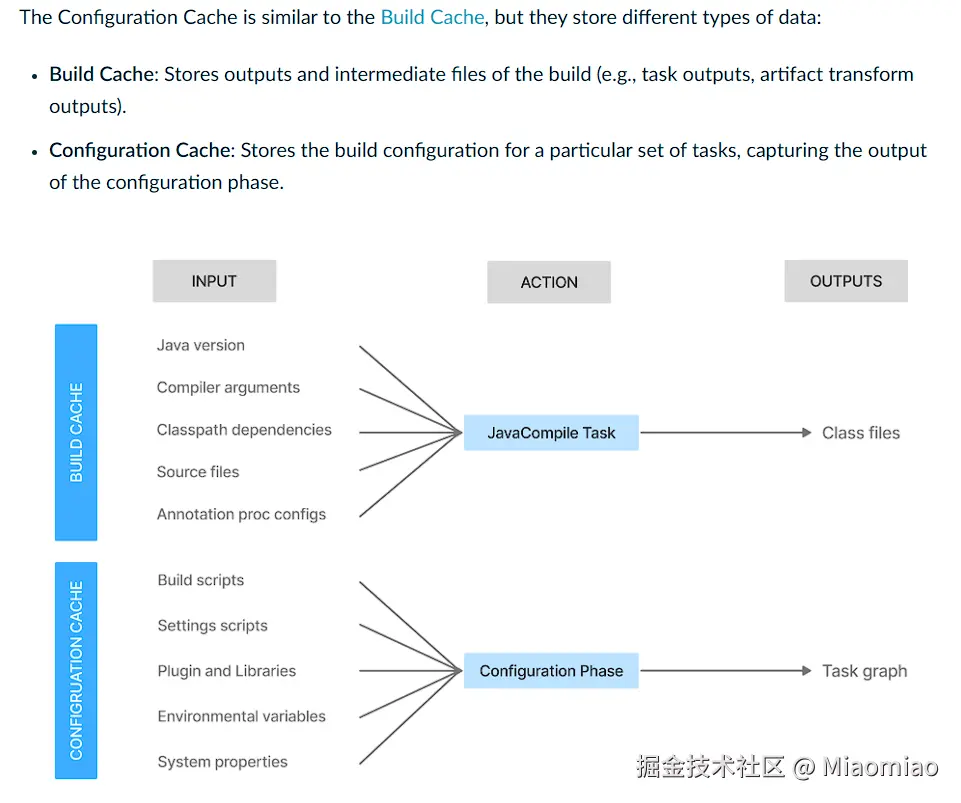 Gradle 在开始构建时,会先进行配置,解析配置文件,分析依赖等。在安卓中往往发生在Gradle Sync 时。Configuration Cahe 是针对配置阶段的缓存,当项目依赖较多,配置经常变动时尤其有用。此外,Android Studio 的Build Analyzer 也可能在你的项目配置较慢时提出warning 和添加configuration cache 的建议。