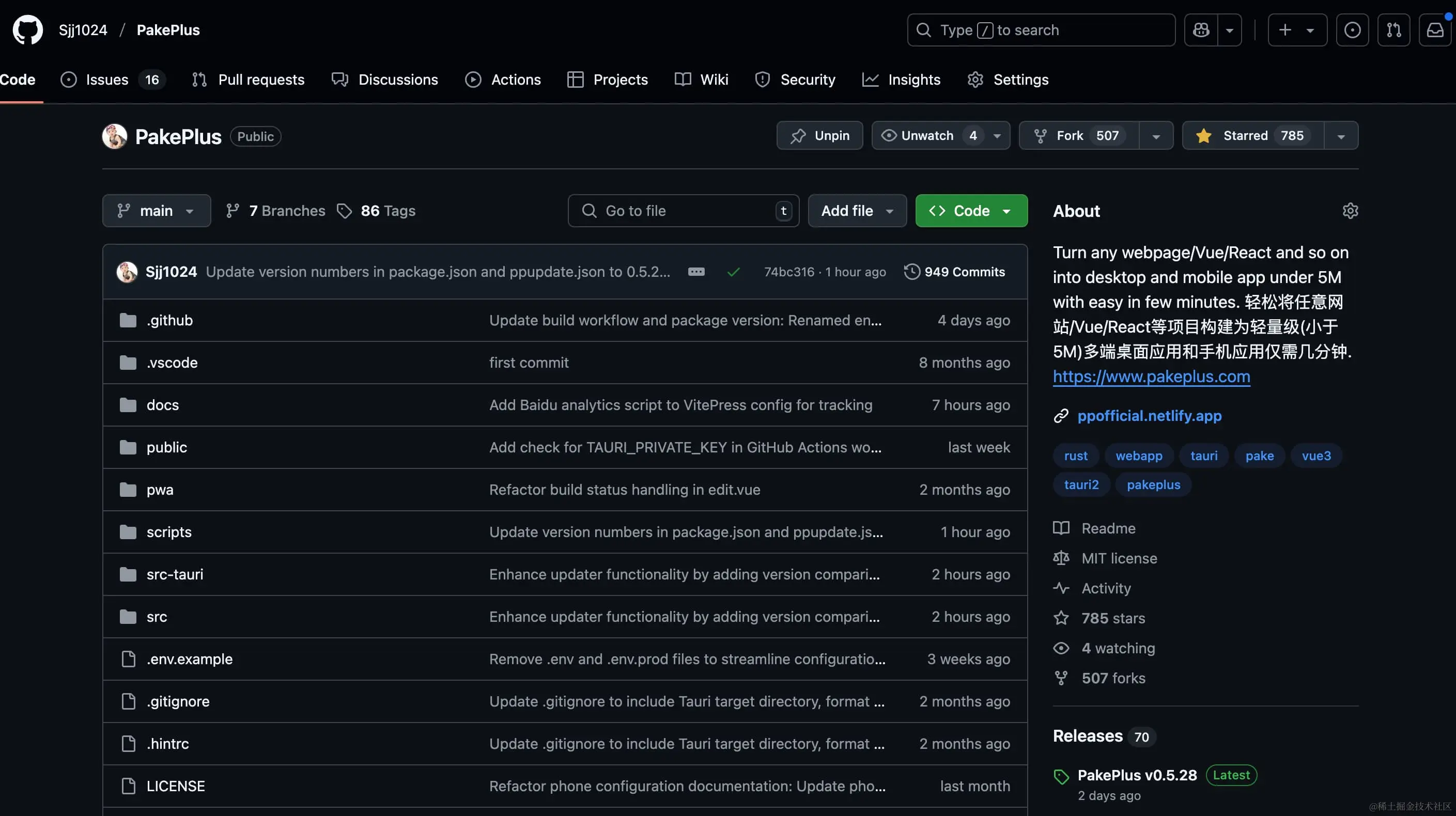 Github 地址:GitHub - Sjj1024/PakePlus: Turn any webpage/Vue/React and so on into desktop and mobile app under 5M with easy in few minutes. 轻松将任意网站/Vue/React等项目构建为轻量级(小于5M)多端桌面应用和手机应用仅需几分钟. https://www.pakeplus.com
