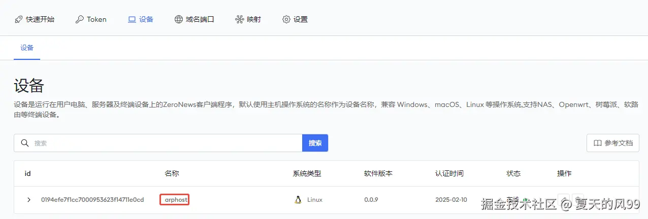 ZeroNews容器启动后,您可以在ZeroNews平台上查看容器设备状态,确认它已经上线。