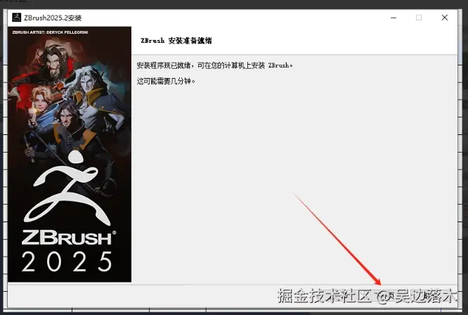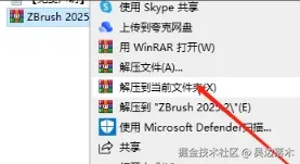 选择安装程序“ZBrush_2025.2_Installer.exe”鼠标右键以管理员身份运行