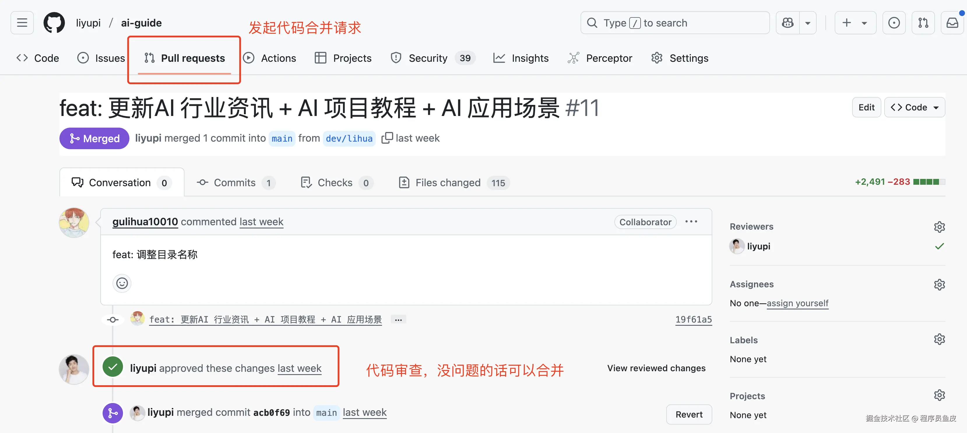 这是一个对程序员有用的功能,团队开发时,我们每次修改代码都会给代码仓库提交一个代码变更请求,也就是 PR,其他同学需要审查代码,没有问题后再通过 PR 将修改后的代码合并到仓库中。