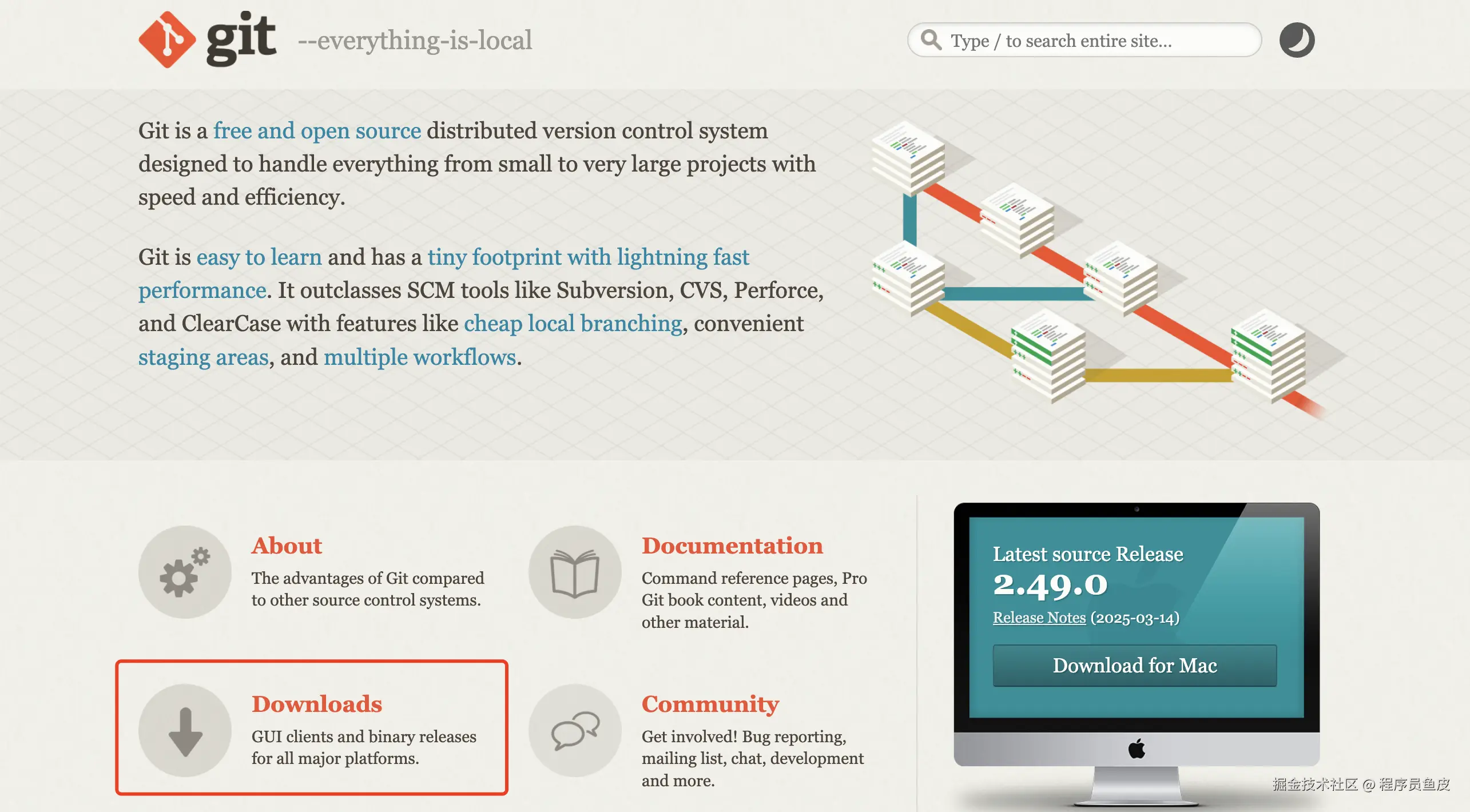 好家伙,这一步直接把不懂编程的同学劝退完了!没关系,我来教大家。Git 是一个用户控制代码版本的团队协作工具,我们只需要到官网安装它: