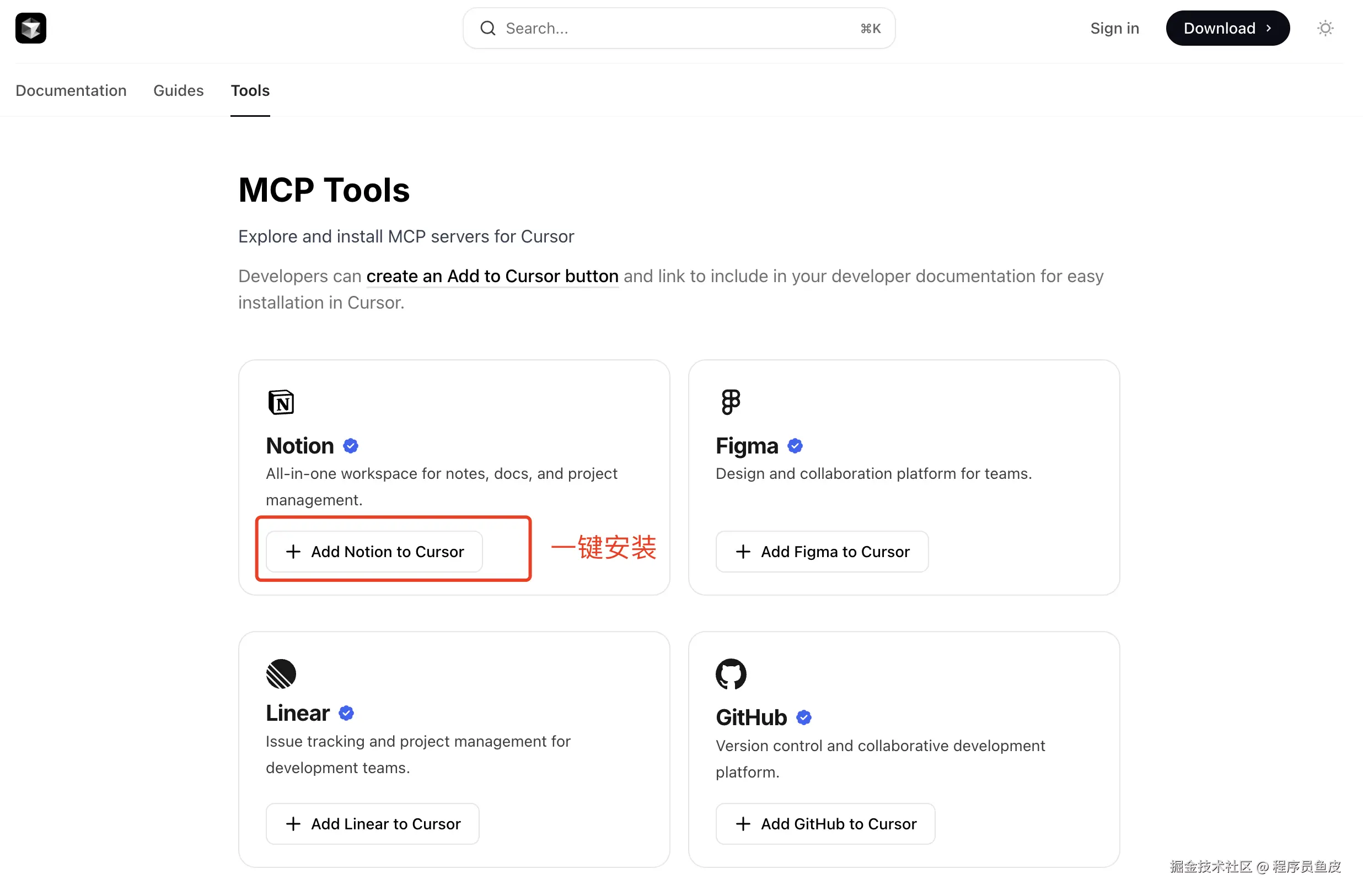 最后一个亮点是 MCP 一键安装,所谓 MCP 就是一种快速提供给 AI 工具来增强能力的标准。