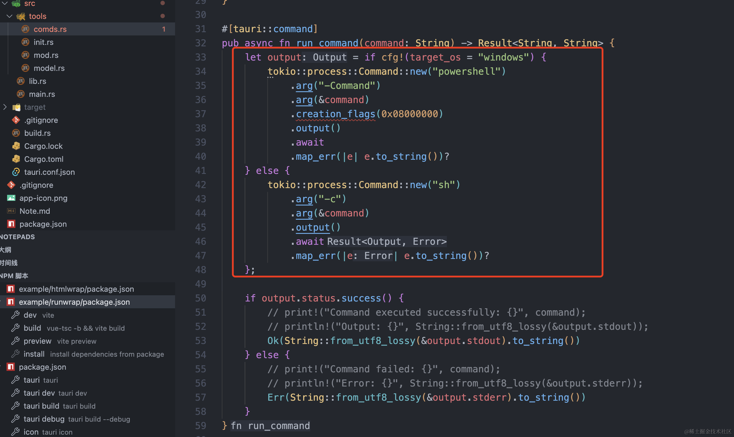 当你在 Tauri 中使用 tokio::process::Command 执行命令时弹出 CMD 窗口,这是因为 Windows 默认会为控制台程序创建可见窗口。以下是几种解决方法: