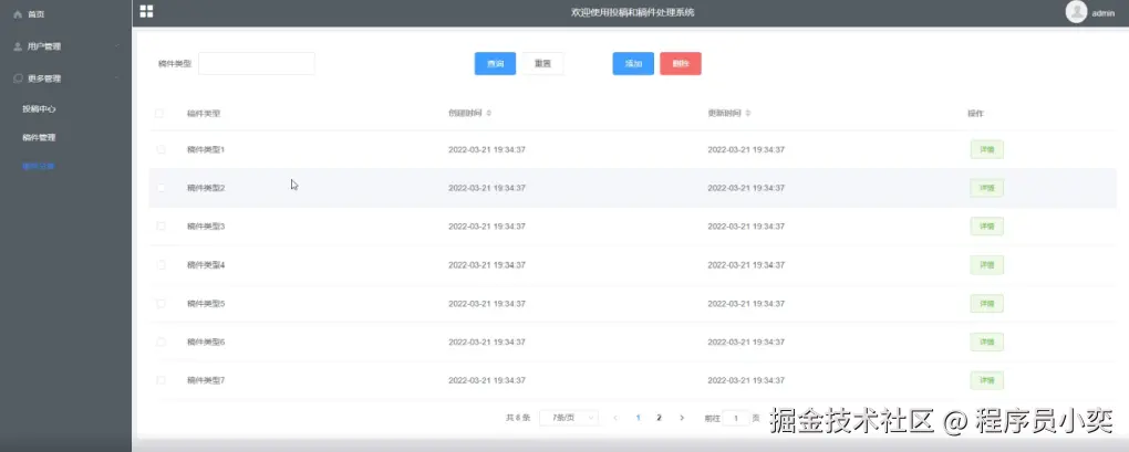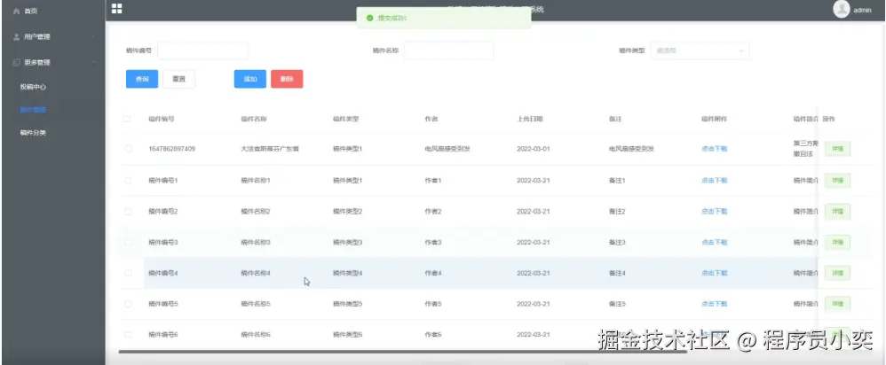 稿件管理界面如下图所示。