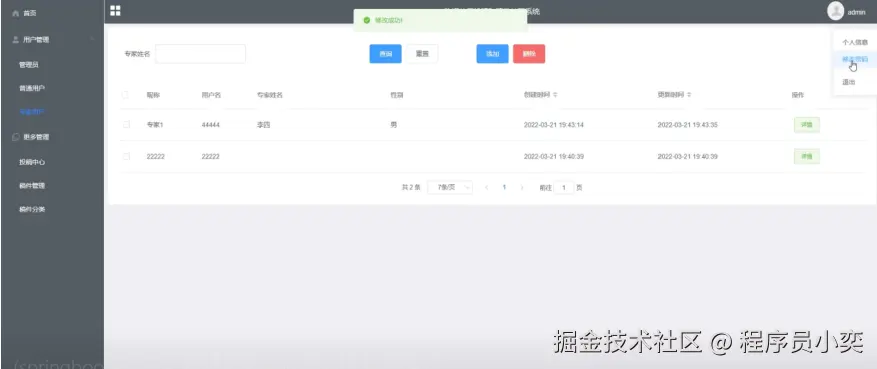 专家管理页面设计效果如下图所示。