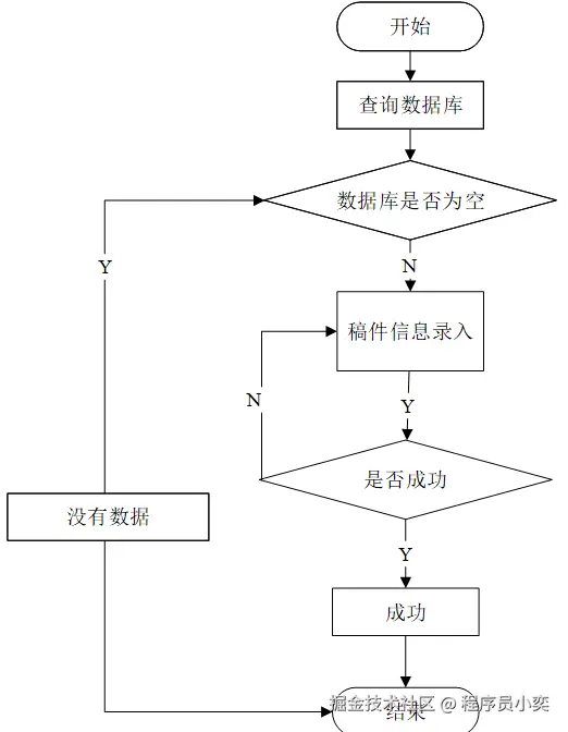 对于投稿和稿件处理系统,需要随时添加所需要的数据信息,对于用户添加信息,需要根据添加界面,根据选框的内容进行填写所要添加的数据信息,信息输入完成后判断数据信息是否符合要求,符合要求则添加完成,用户所添加的信息不符合要求,则需要返回到第一步,重新输入数据信息,再进行判断操作,如图3-2所示。