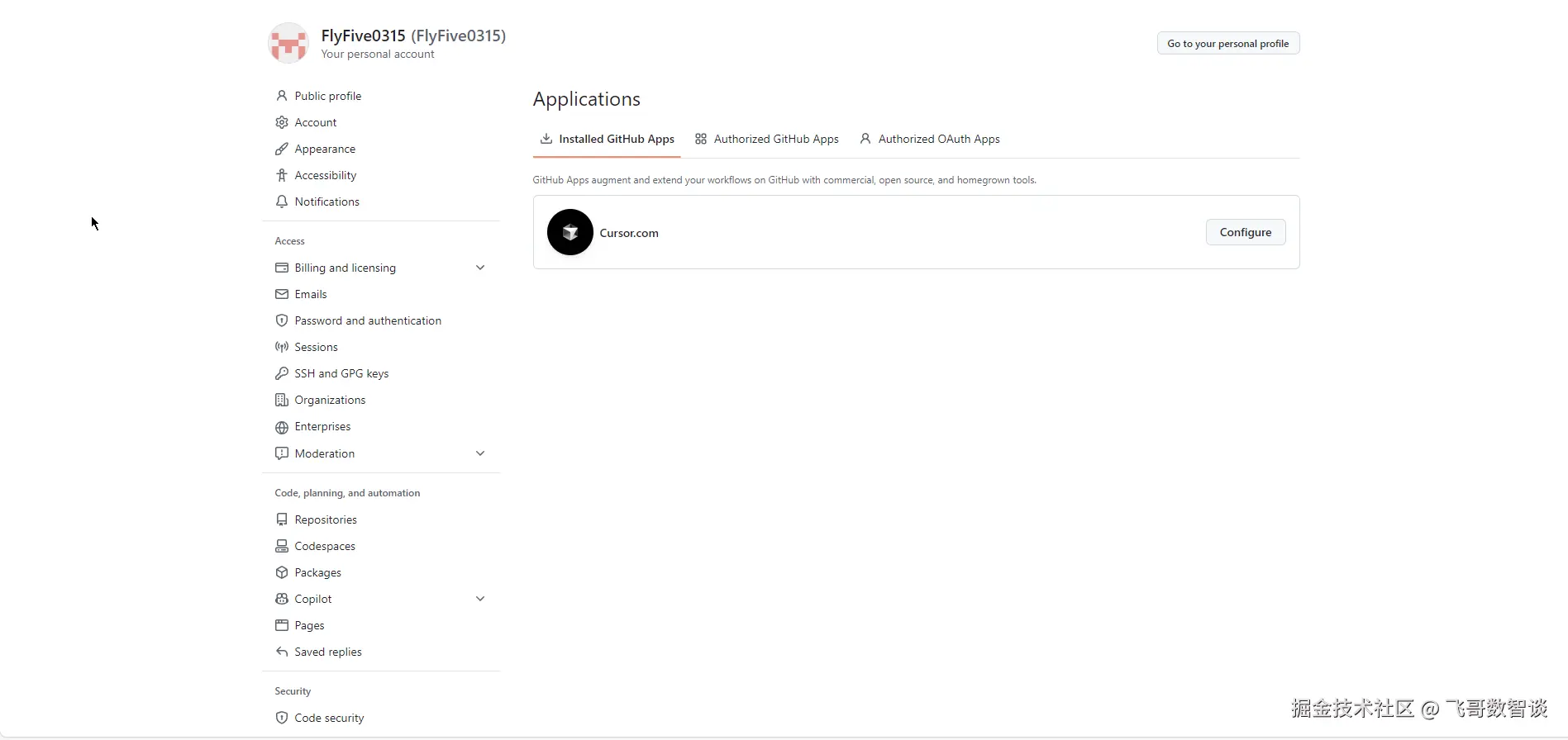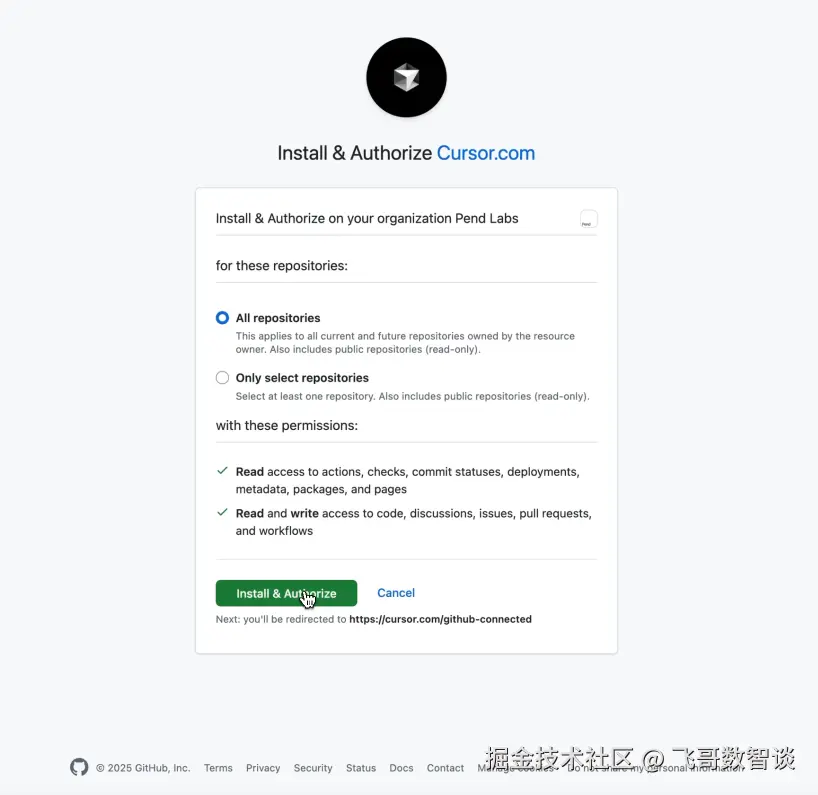 其实 BugBot 的安装就是授权了一个 Cursor 在 Github 发布的应用。