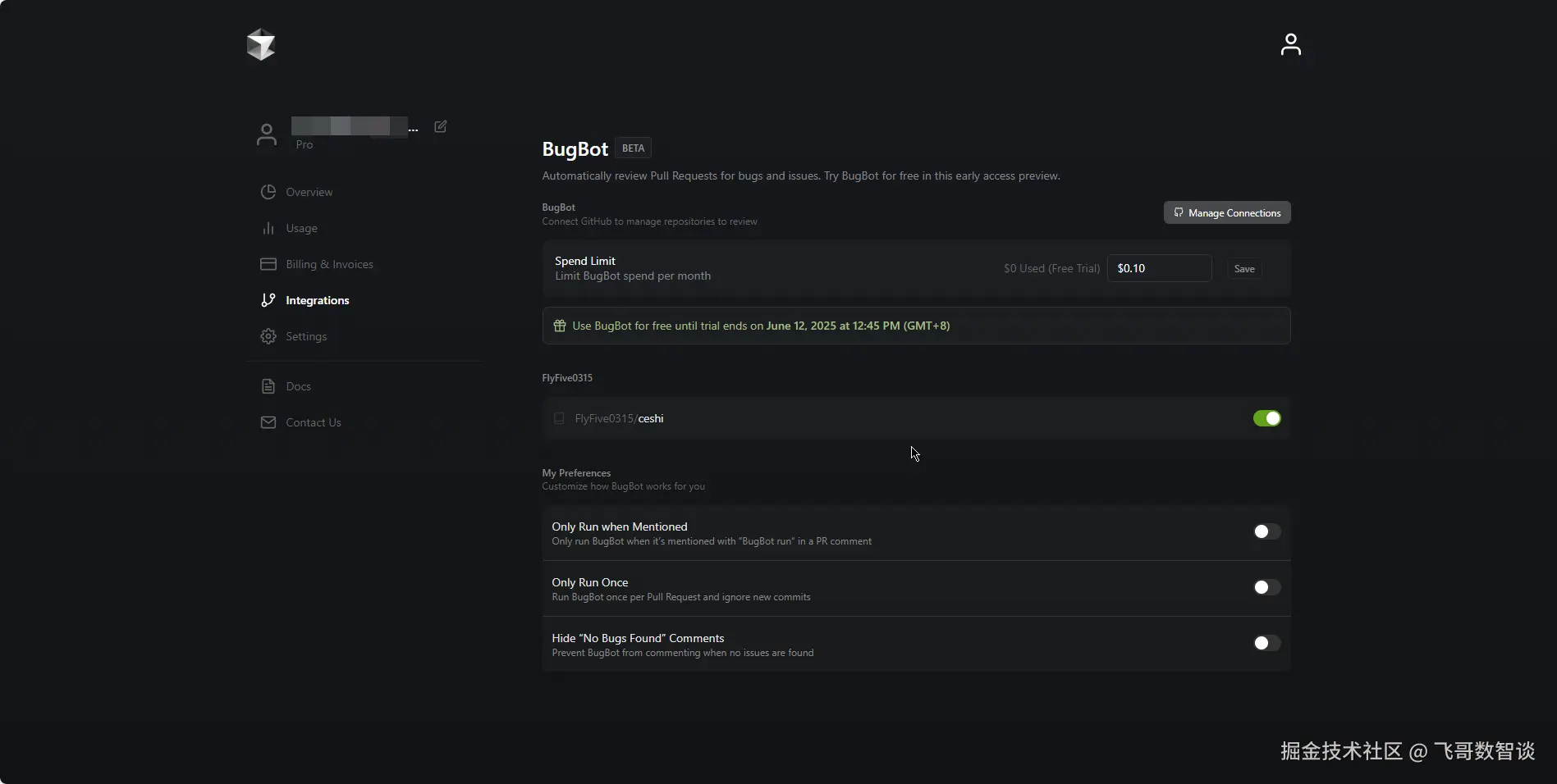 虽然个人感觉目前 BugBot 的功能设计还有些初级,比如,仅支持 Github,没法后台自行修改提交等。