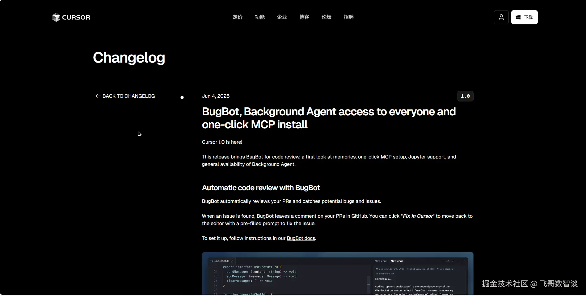 早上看到资讯,Cursor 1.0 正式版发布了。
