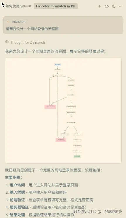 这个就简单了,只是在响应中除了原有的文字、代码内容外,还提供了更丰富的展示形式,比如 Mermaid 图表。