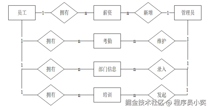 对于一个要开发的系统来说,E-R图可以让别人能更快更轻松的了解此系统的事务及它们之间的关系。根据系统分析阶段所得出的结论确定了在企业人力资源管理系统安全方案中存在着多个实体分别是用员工、部门信息、培训信息、薪资信息、员工信息。