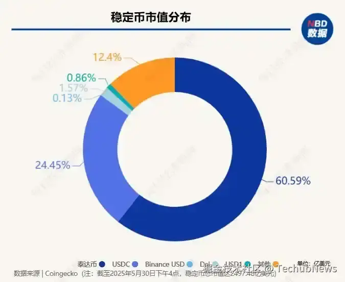 要明确的是,美元不等于稳定币,但稳定币等于美元。美元依然可以超发,稳定币会跟着受影响。截止今年,稳定币规模才2497亿美元,《GENIUS法案》也没规定稳定币取代美元,也没规定有多少美元就必须发多少稳定币。