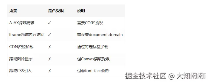 同源策略(Same-Origin Policy)是浏览器最基本的安全机制,但它并非全面禁止所有跨域行为,而是有明确的管辖范围: