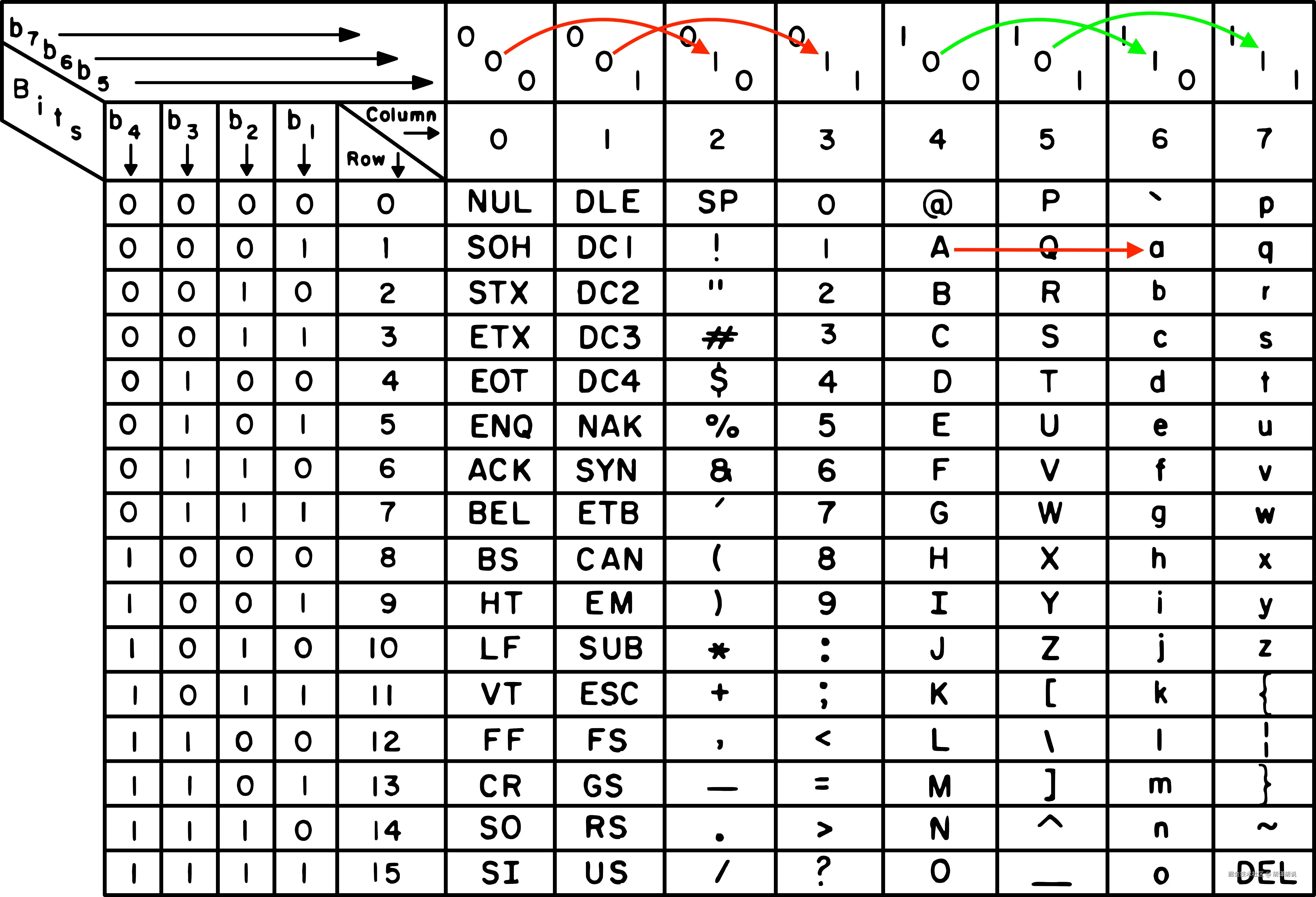 不过,从更严谨的角度看,这相当于把 ASCII 码表中第 1、2 列的字符分别映射到了第 3、4 列上,把第 5、6 列的字符分别映射到了第 7、8 列上(所以 “)” 和“*”的数量可能虚高)。