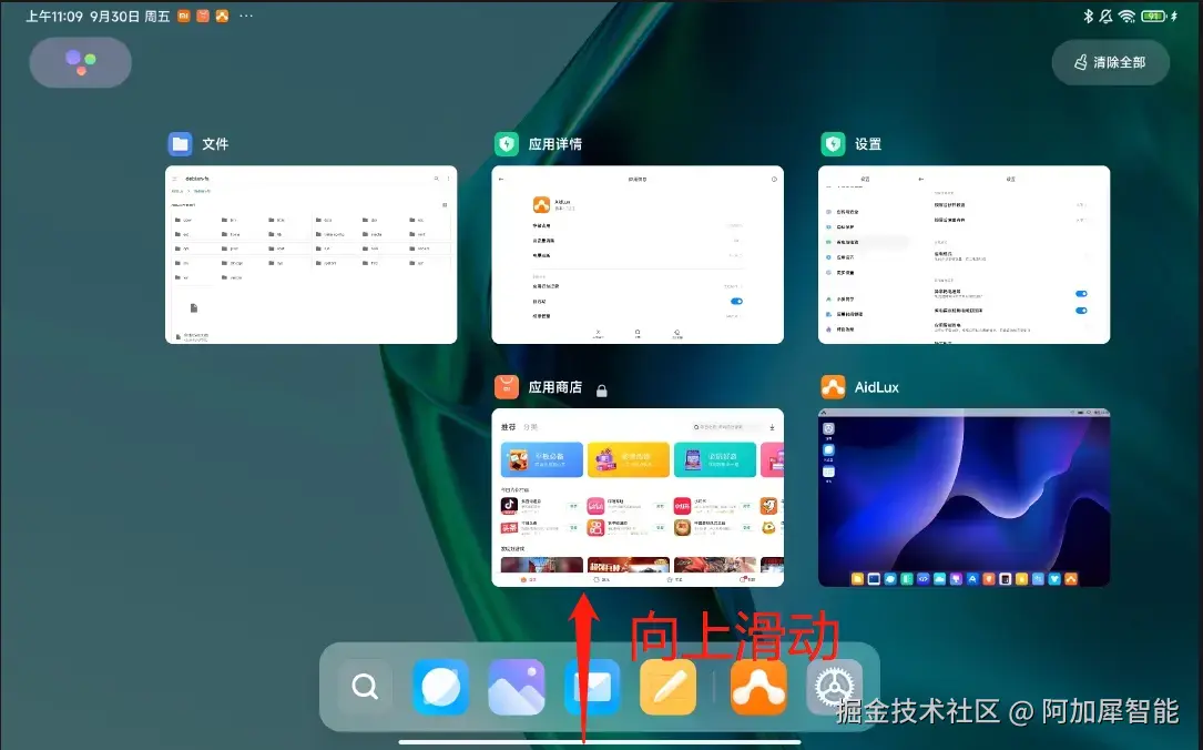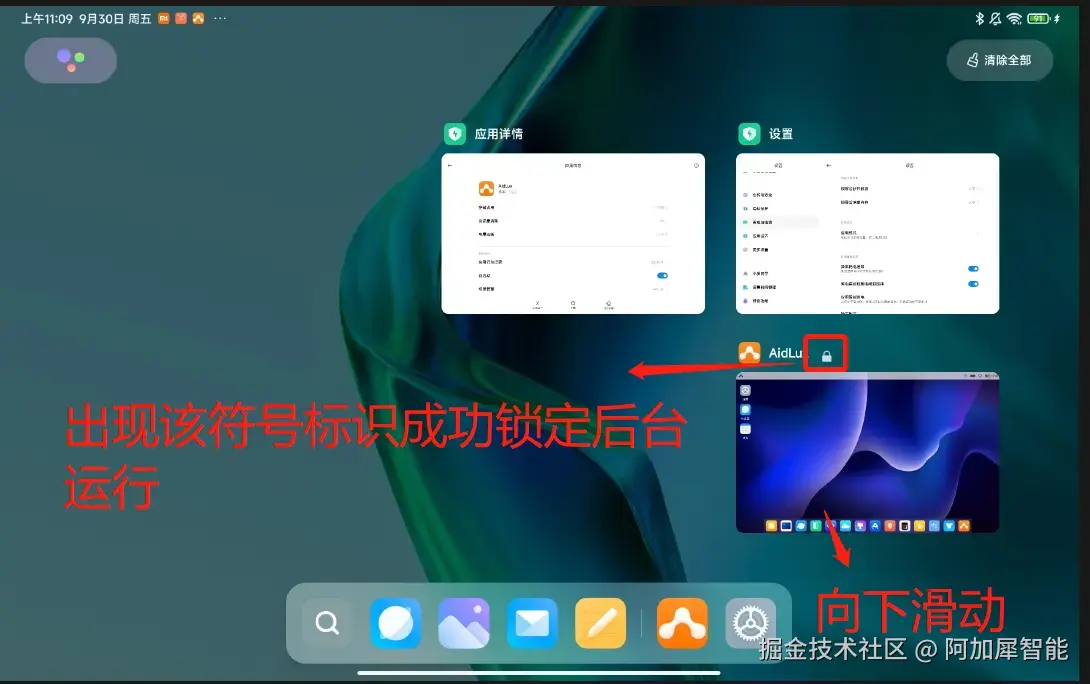 第九步:也是最重要的一步,锁定AidLux后台运行 从屏幕下方向上滑动,进入多任务管理