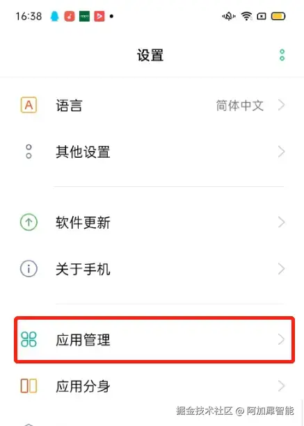 第一步:点击设置——应用管理