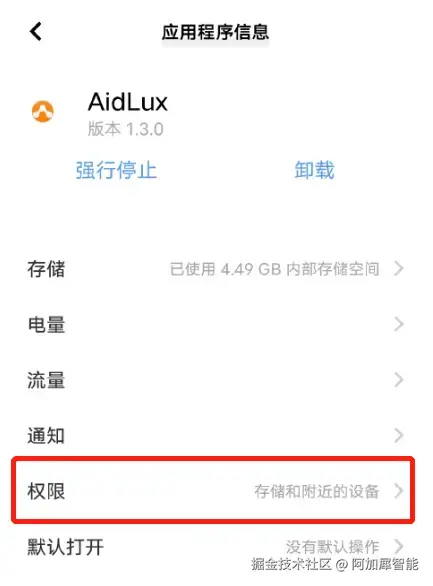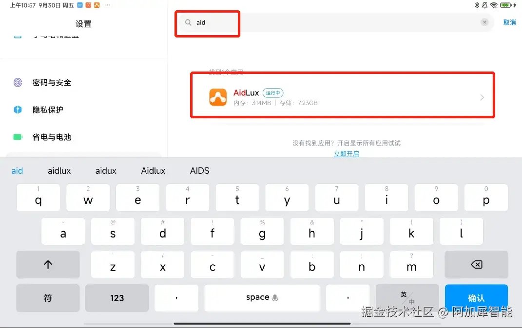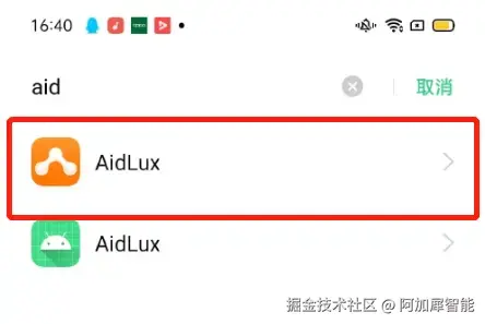 搜索aidlux应用——点击进入关于aidlux的应用设置