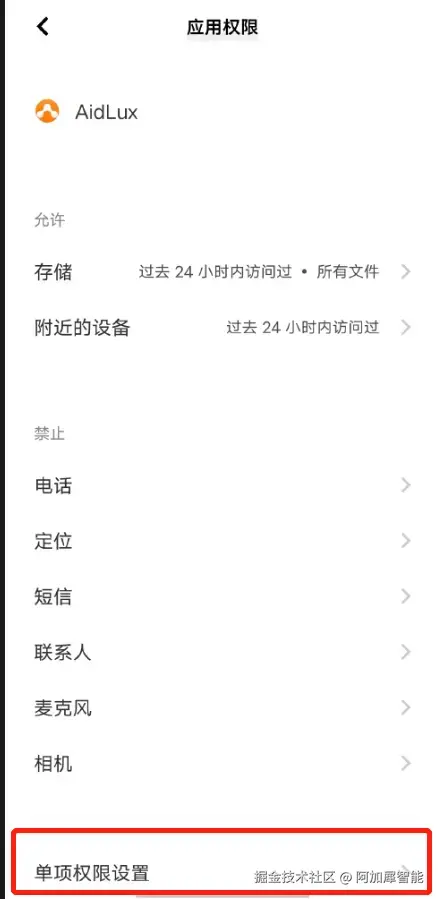 第四步:后台运行,打开权限——单项权限设置