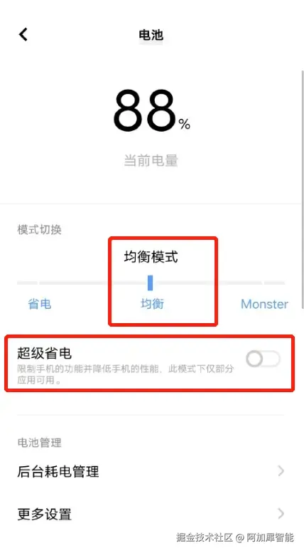 设置为均衡模式,关闭超级省电模式