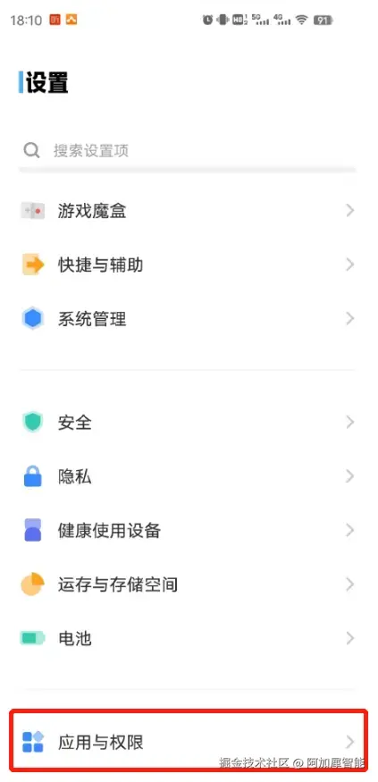 第一步:点击设置——应用与权限