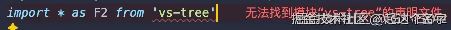 如果 vs-tree 没有提供 .d.ts 文件(也就是没有类型定义),TypeScript 编译器就会报错: