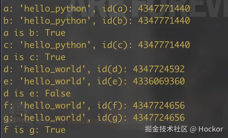 print(f"a is b: {a is b}") # 通常为 True,因为 "hello_python" 是字面量且符合标识符规则