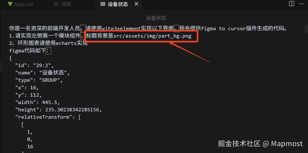 - 点击Figma设计稿中的对应的Group,再点击Copy to Cursor按钮复制代码。