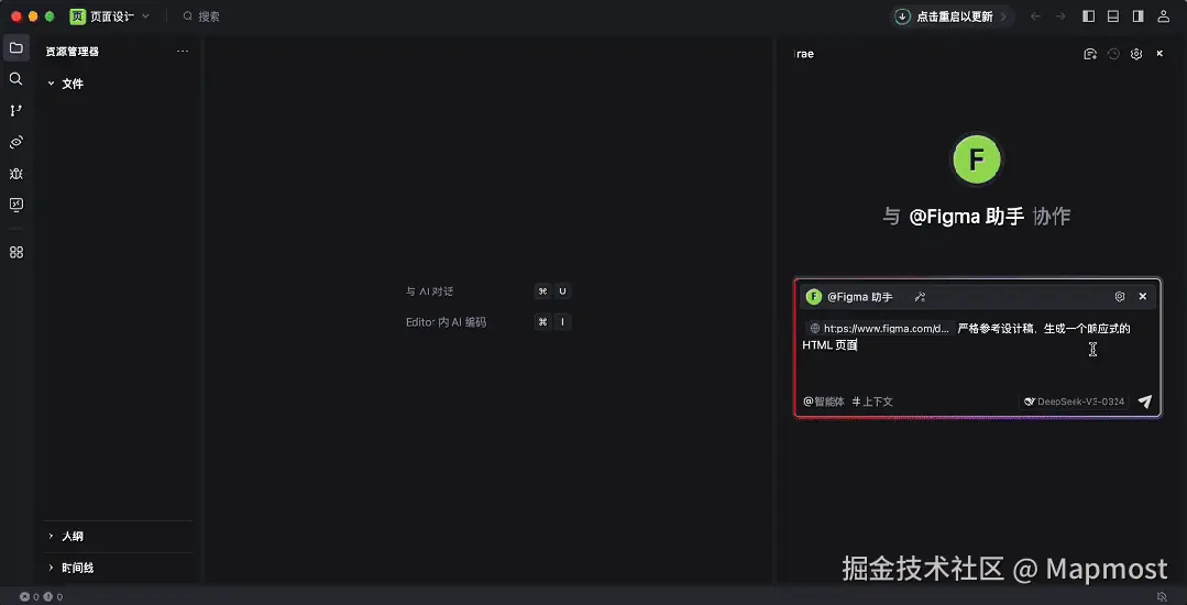 - Cursor IDE它是一个专门为 AI 编程设计的集成开发环境。它可以接收从Figma导出的设计稿信息,并利用其强大的 AI 引擎生成高质量的前端代码。Cursor IDE不仅支持多种前端框架和库,还提供了丰富的代码编辑和调试功能,可以让我们在生成代码的基础上进行进一步的优化和调整。www.cursor.com/cn