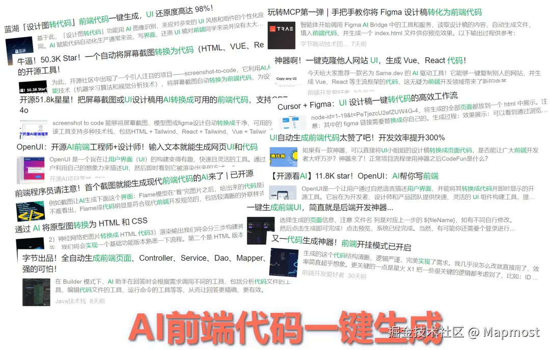 我最近刷技术博客和公众号的时候,被各种“AI 一键生成前端代码”、“10 秒完成界面开发”之类的标题刷屏了。