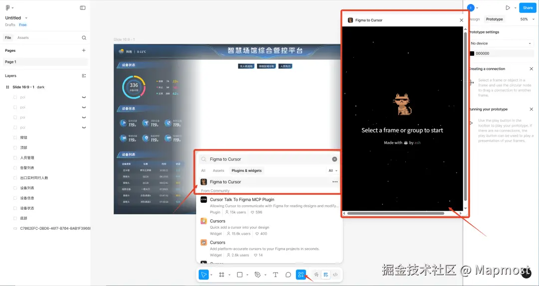打开我们准备的Figma设计稿,在插件中搜索Figma to Cursor,点击打开即可使用。