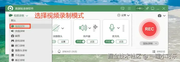 步骤1:录制屏幕怎么设置?首先双击打开该软件,选择你想要的录制模式,该软件有着多种录制模式,如视频录制、音频录制、游戏录制等。本文选择 【视频录制】 模式。