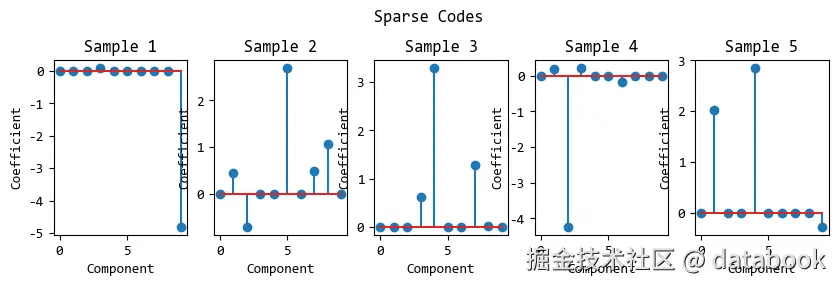 # 稀疏编码sparse_code形状是(n_samples, n_components),即(100, 10)