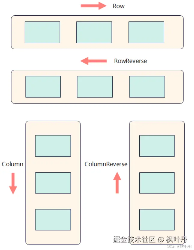 线性布局的排列方向由所选容器组件决定。根据不同的排列方向,选择使用Row或Column容器创建线性布局,通过调整space,alignItems,justifyContent属性调整子组件的间距,水平垂直方向的对齐方式。