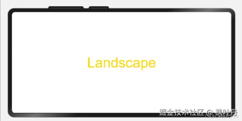 横屏下文本内容为Landscape,颜色为#FFD700。