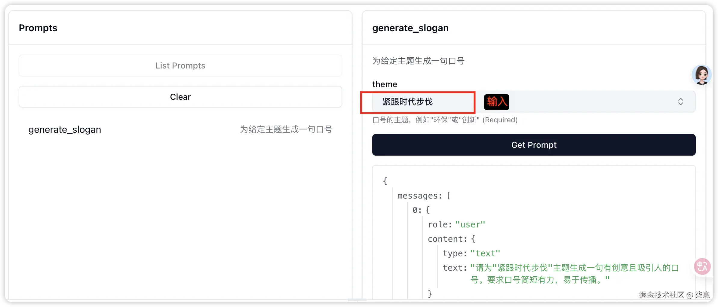 "generate_slogan", // 提示的内部名称
