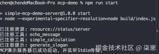 console.error("MCP演示服务器已成功启动,并监听Stdio传输。"); // 使用console.error避免干扰Stdio通信
