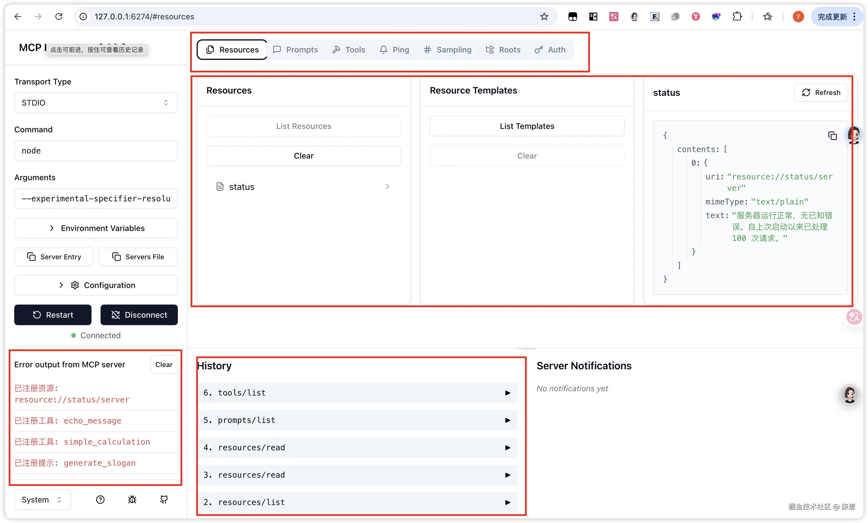 用浏览器打开http://127.0.0.1:6274