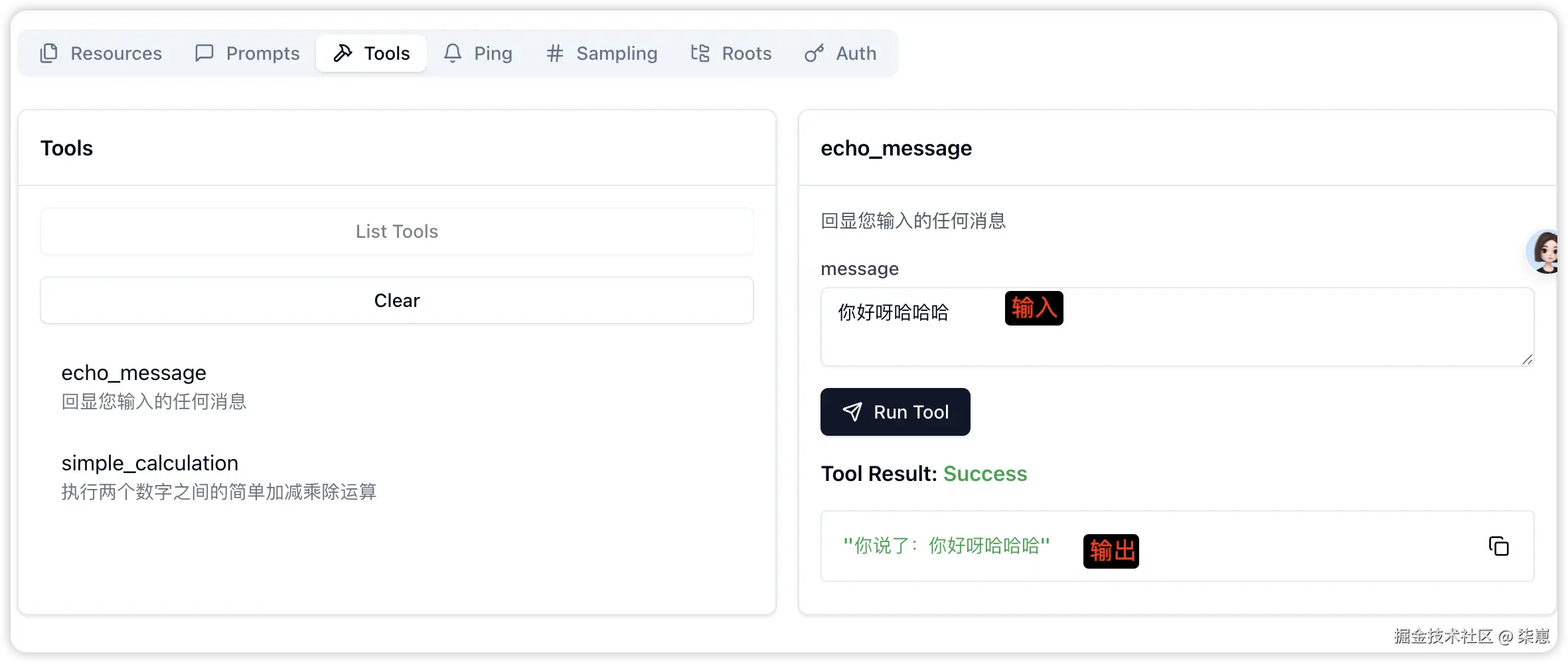 "echo_message", // 工具的内部名称
