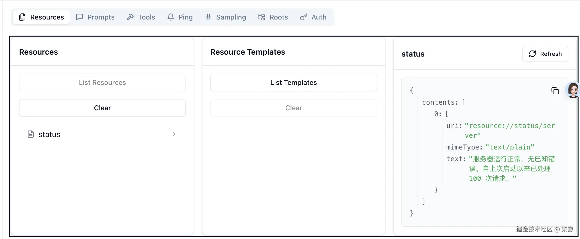 "resource://status/server", // 资源的URI模板,这是一个固定URI,表示服务器状态