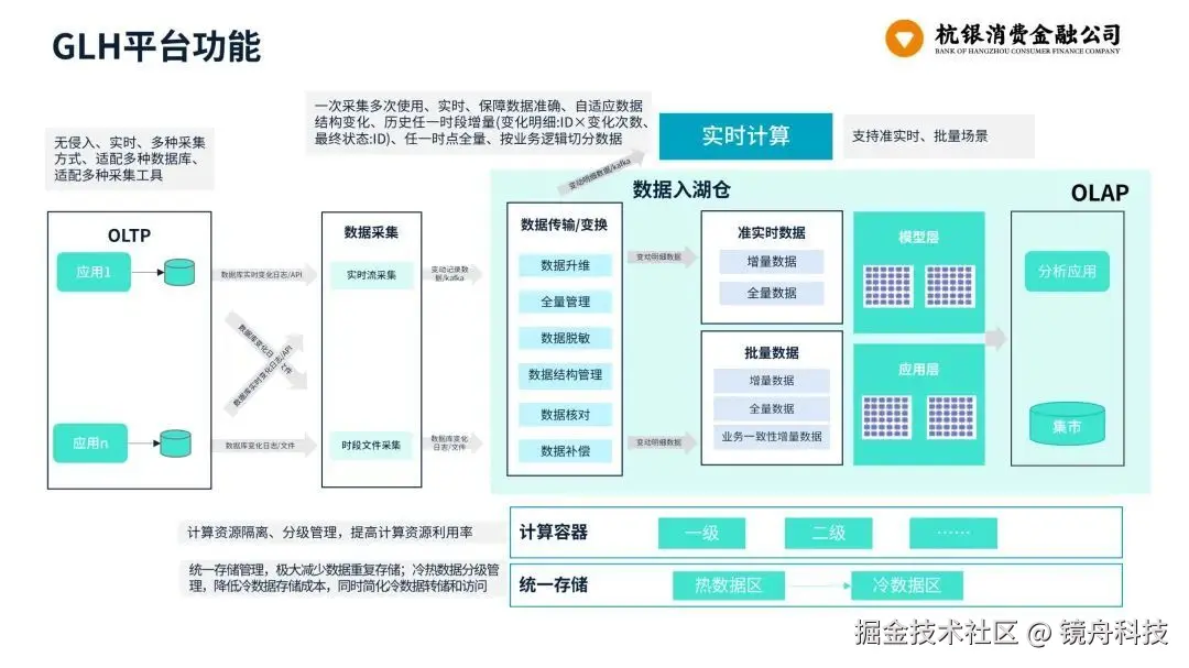 基于镜舟数据库构建的 GLH 湖仓一体平台,不仅解决了杭银消费金融在数据管理中面临的关键痛点,还为公司数字化转型提供了坚实的数据基础。通过构建“湖仓一体”的数据架构,公司实现了数据资产的整合与价值释放,为业务创新提供了强有力的数据支撑。