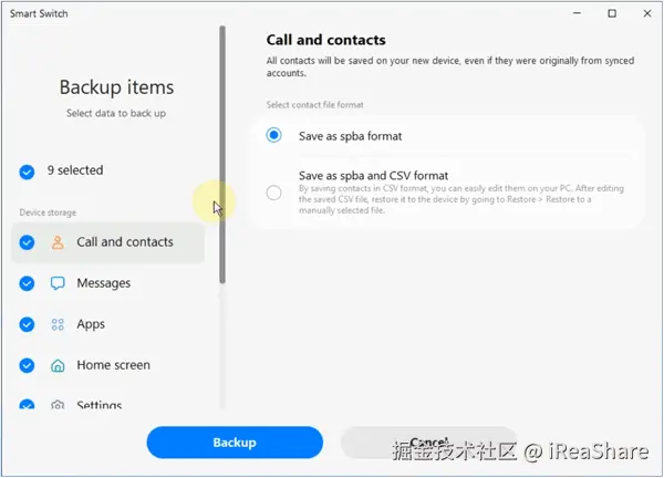 对于希望更好地控制备份过程并将数据本地存储在电脑上的用户来说,安卓管理工具iReaShare Android Manager是一个不错的选择。这款软件可以将各种类型的数据(例如短信、联系人、照片、视频、已安装的应用等)直接备份到电脑上。此外,它还可以将备份数据恢复到安卓手机,而不会覆盖现有文件。