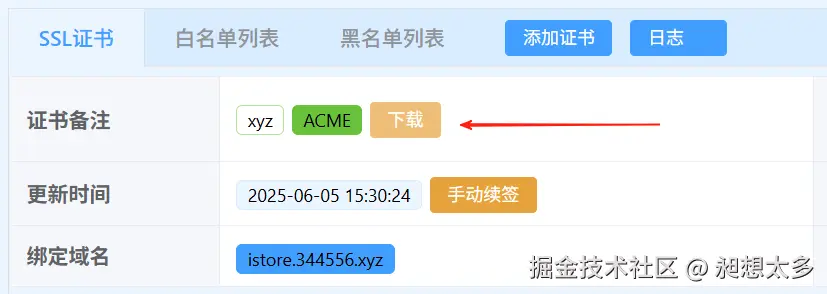 备注和域名列表填的内容一致,防止生成的证书名称不一致。此处截图实例仅供参考。
