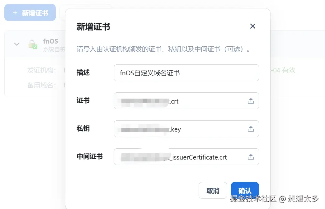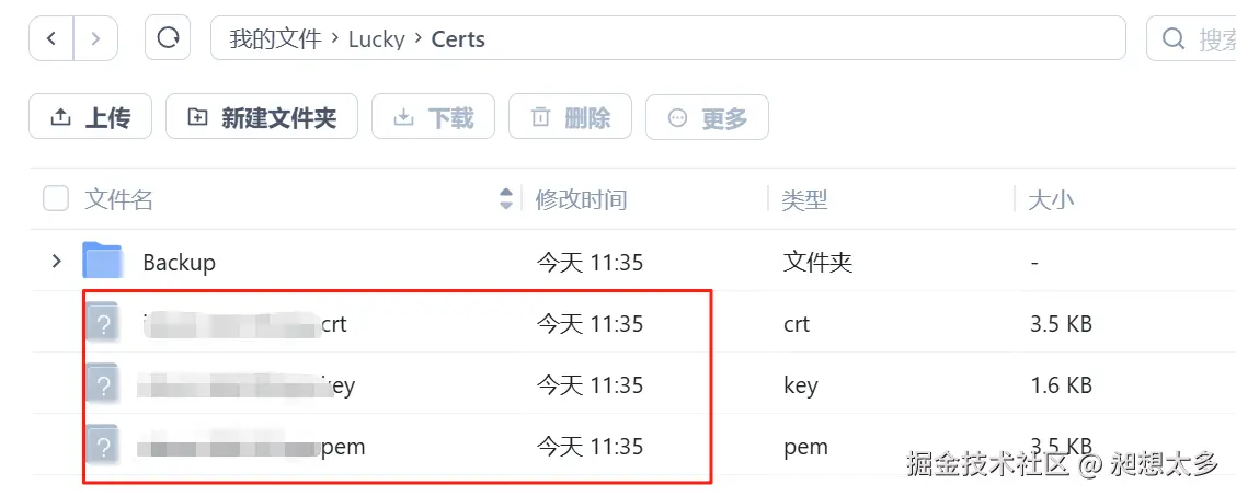 - 打开飞牛文件管理证书放的文件夹,就可以看到更新后的证书。