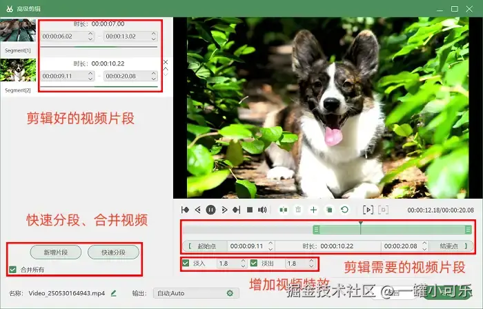 步骤3:视频录制好了之后,先别急着离开,你还可以进入 “高级剪辑” 页面,对视频进行快速分段、剪辑、添加特效等操作哦!