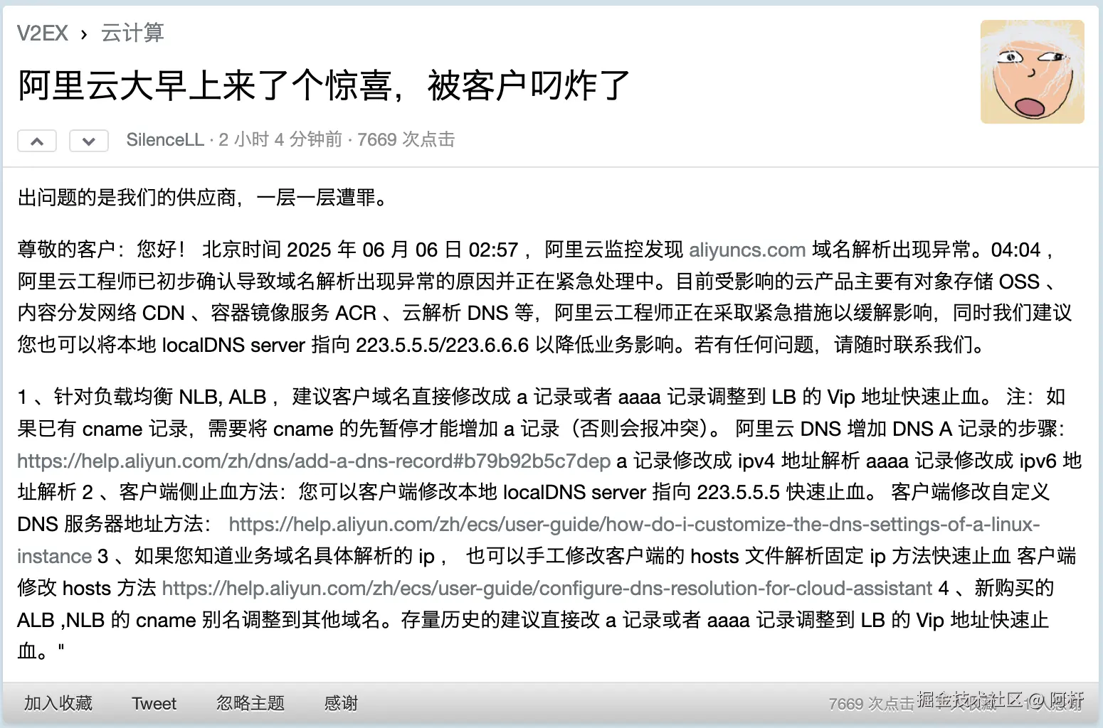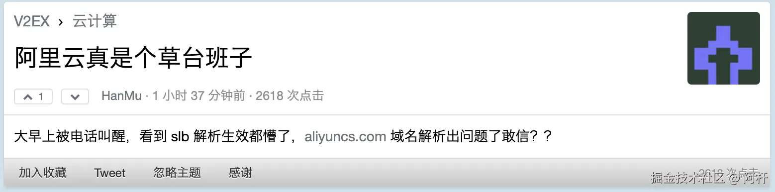 “建议阿里给自己买个云解析高级版。”